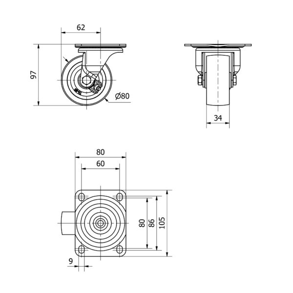 Rueda acero giratoria Alex diametro 80 mm. modelo 4-0276 EAN 8422202402765