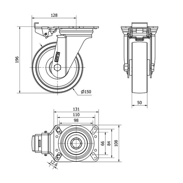 Rueda acero giratoria con bloqueo direccional Alex diametro 150 mm. modelo 2-3347 EAN 8422202233475