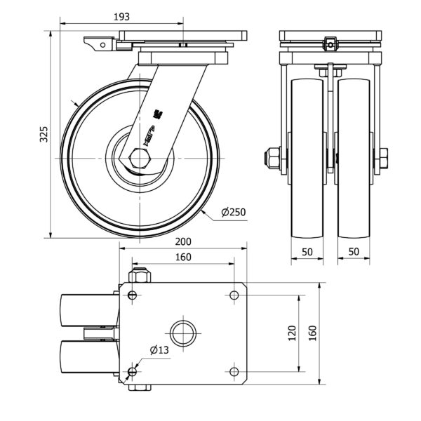 Rueda acero giratoria con bloqueo direccional Alex diametro 250 mm. modelo 2-3842