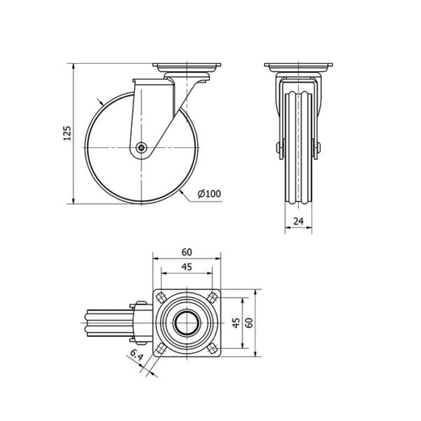 Rueda aluminio giratoria Alex diametro 100 mm. modelo 1-0537