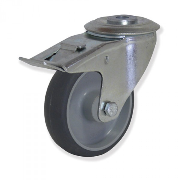 Rueda giratoria con freno caucho Gayner diametro 160 mm. MTG4 160 PCR4-FD codigo 34-086/52-FD