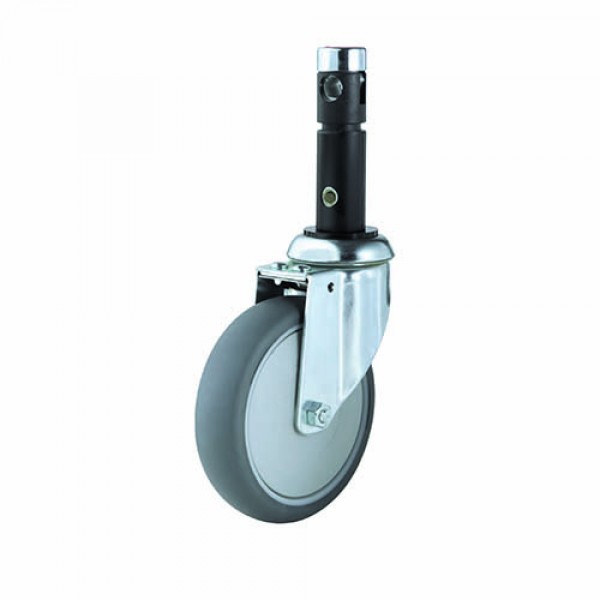 R4: Núcleo en polipropileno PP de alta resistencia con bandaje de Poliuretano PU de alta durabilidad. Cojinetes de bolas de primera calidad protegidos por antihilos en plástico gris metalizado. Temperatura de trabajo -10ºC. a +60ºC. Velocidad máxima: 3,2 Km/h. Espesor pletina y horquilla: 2,5 mm. Diseño innovador. Bandaje con suavidad de rodadura y protección del suelo (no deja marca). Soporte reforzado pintado en color verde oscuro.