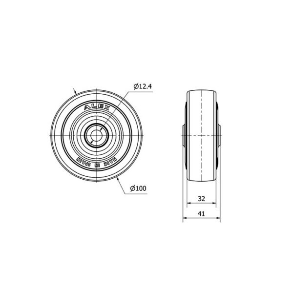 Rueda goma aro suelto Alex diametro 100 mm. modelo 2-0784