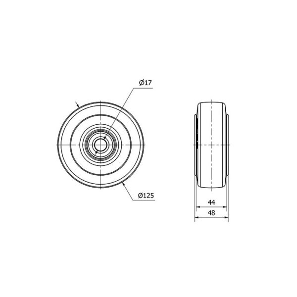 Rueda goma aro suelto Alex diametro 125 mm. modelo 2-0785