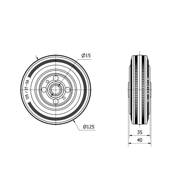 Rueda goma aro suelto Alex diametro 125 mm. modelo 4-0743 EAN 8422202407432