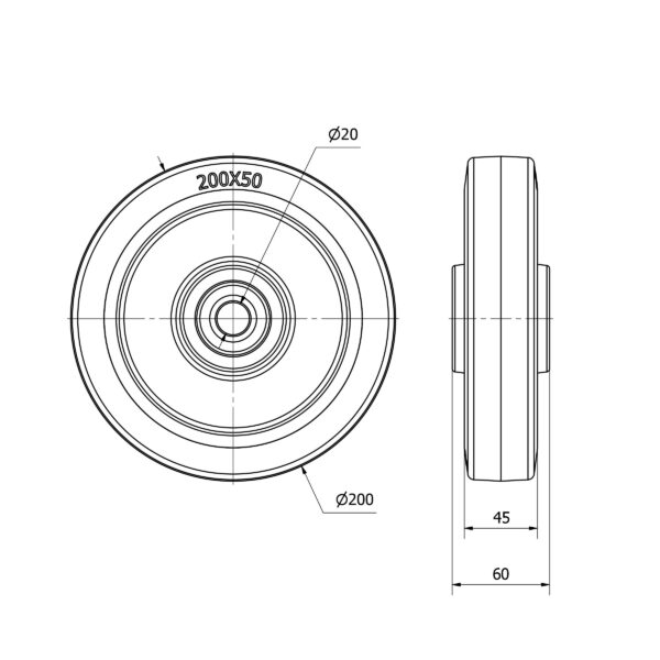 Rueda goma aro suelto Alex diametro 200 mm. modelo 2-4430