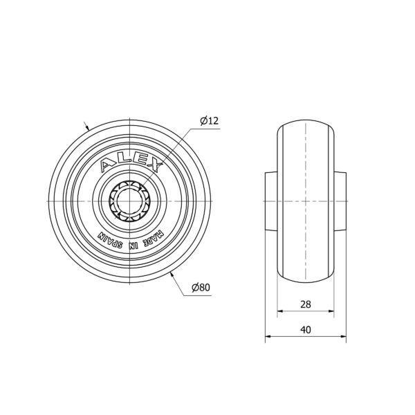Rueda goma aro suelto Alex diametro 80 mm. modelo 2-3147