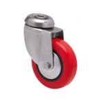 La serie de ruedas Alex BHI INOX-PGI son de goma gris inyectada, con todos sus componentes de acero inoxidable (AISI-304), indicadas para soportar cargas hasta 60 Kg. Se utilizan en exteriores, carros de transporte de alimentación, cantinas, comedores, restaurantes, empresas de alimentación, máquinas de embalajes y cintas transportadoras. PGI: No ralla el suelo. Silenciosa y no deja huella.