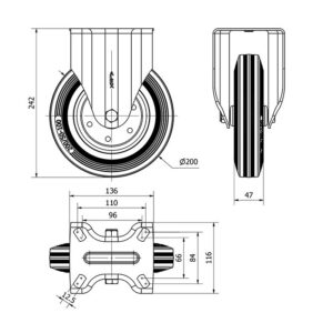 Rueda goma fija Alex diametro 100 mm. modelo 2-0226
