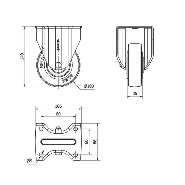 Rueda goma fija Alex diametro 100 mm. modelo 2-1257