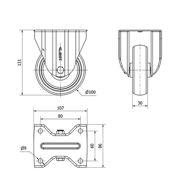 Rueda goma fija Alex diametro 100 mm. modelo 2-3223 EAN 8422202232232