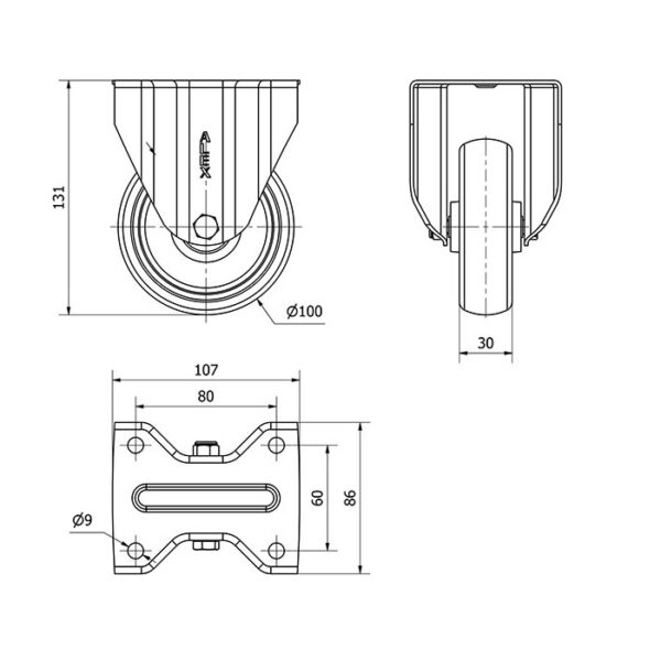 Rueda goma fija Alex diametro 100 mm. modelo 2-3275 EAN 8422202232751