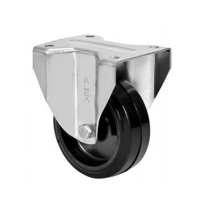 La serie de ruedas Alex ZVI INOX-THG son de goma negra, indicadas para soportar temperaturas de hasta 250ºC. en intervalos de 30 minutos y cargas hasta 100 Kg., con todos los elementos de acero inoxidable (AISI-304). Se utilizan en hornos, maquinaría ligera, en sectores industriales, aeronáutico y automoción, alimentación, maquinas vending, maquinaria para panaderías, maquinaría ligera, contenedores y construcciones inoxidables. THG: Ideal para el traslado manual de cargas medianas y de desplazamiento silencioso, con buena absorción de golpes y vibraciones. Máxima protección de los suelos y del equipo. Ideal para suelos irregulares.