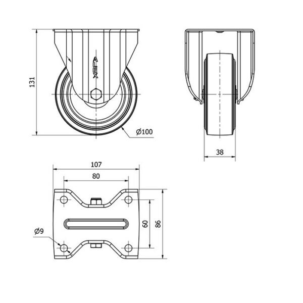 Rueda goma fija Alex diametro 100 mm. modelo 2-4438 EAN 8422202244389