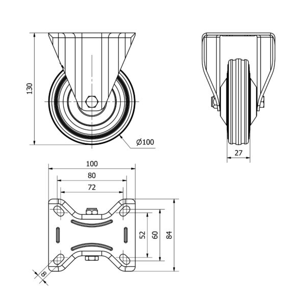 Rueda goma fija Alex diametro 100 mm. modelo TW0030