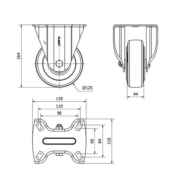 Rueda goma fija Alex diametro 125 mm. modelo 2-0537