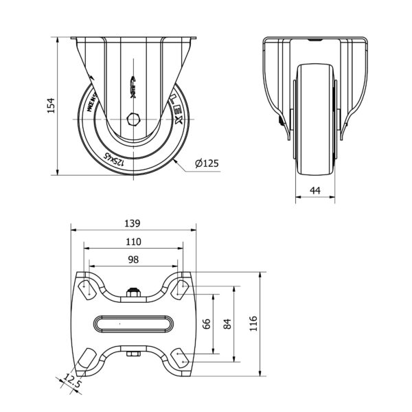 Rueda goma fija Alex diametro 125 mm. modelo 2-3707