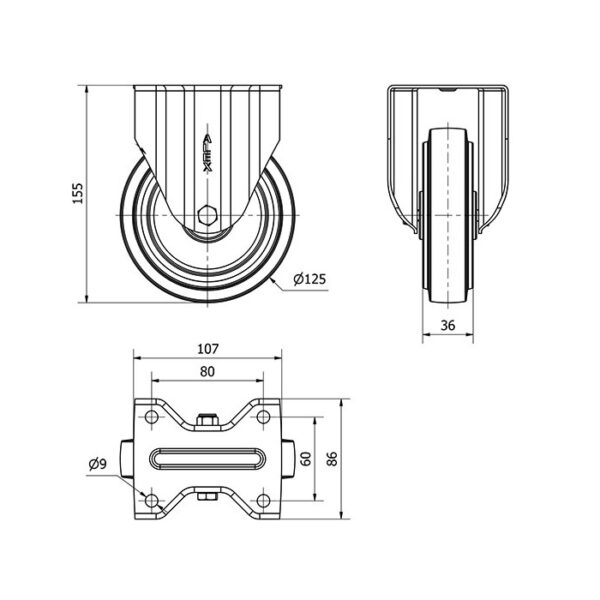 Rueda goma fija Alex diametro 125 mm. modelo 2-3767 EAN 8422202237671