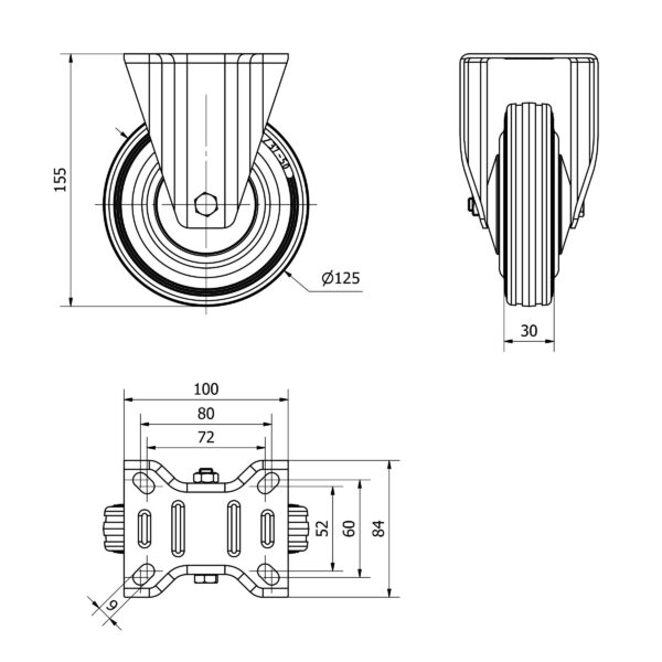 Rueda goma fija Alex diametro 125 mm. modelo TW0031 EAN 8422202000312