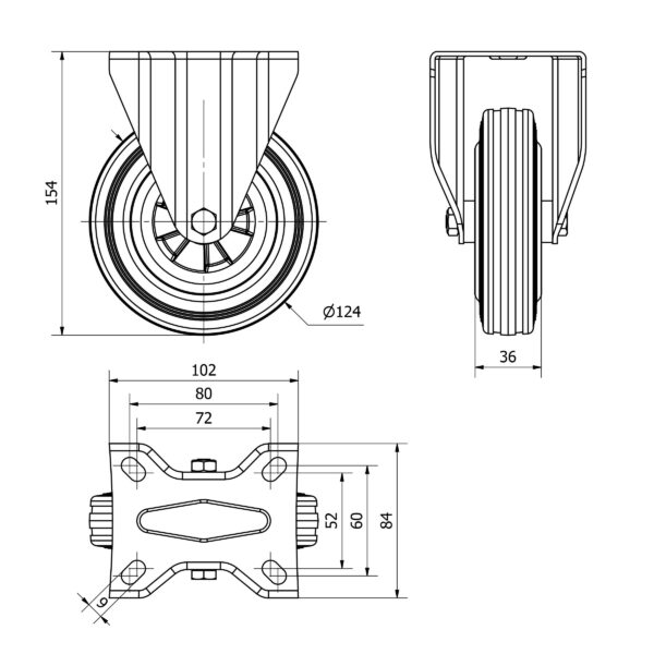 Rueda goma fija Alex diametro 125 mm. modelo TW0260