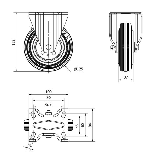 Rueda goma fija Alex diametro 125 mm. modelo TW0275
