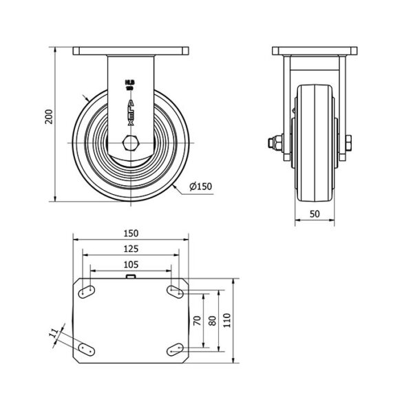 Rueda goma fija Alex diametro 150 mm. modelo 2-1956 EAN 8422202219561