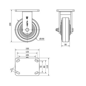 Rueda goma fija Alex diametro 150 mm. modelo 2-1956