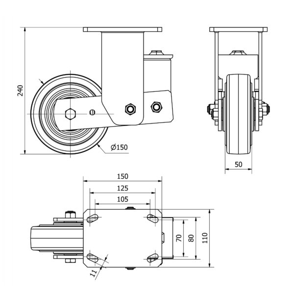 Rueda goma fija Alex diametro 150 mm. modelo 2-3932