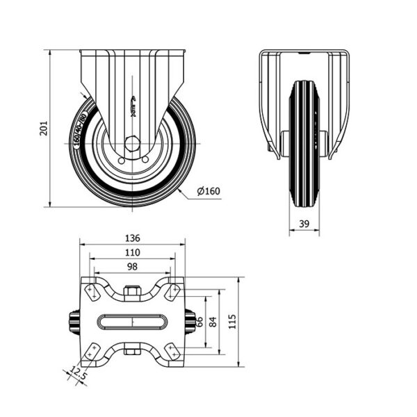 Rueda goma fija Alex diametro 160 mm. modelo 2-0232