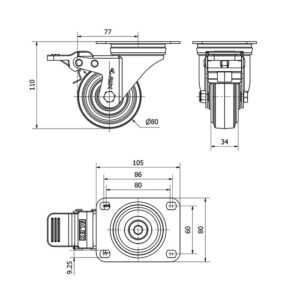La serie de ruedas Alex ZV-PGR son ruedas de goma elástica gris, indicadas para soportar cargas hasta 400 Kg. Se utilizan en carros de herramientas, carros tubulares, logística interna, útiles de transporte, plataformas elevadoras, talleres, carros de transporte de alimentación, cocinas, cantinas, comedores, restaurantes, supermercados, jaulas de transporte, cajas de audio para sonido y gradas móviles. PGR: No manchan el suelo. Gran absorción de golpes y vibraciones. Ruedas suaves y silenciosas. Elásticas.