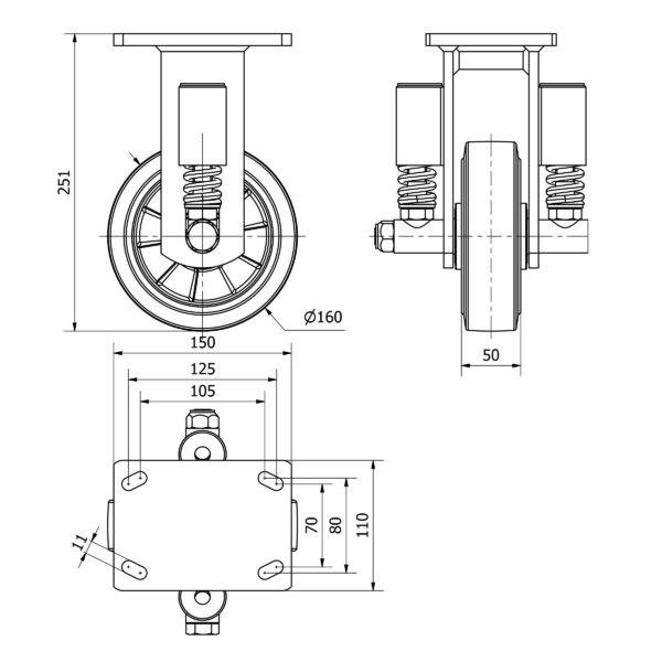 Rueda goma fija Alex diametro 160 mm. modelo 2-4407