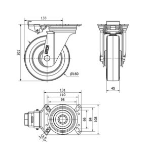 Rueda goma fija Alex diametro 160 mm. modelo 2-4463