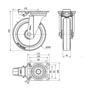 Rueda goma fija Alex diametro 160 mm. modelo 2-4463 EAN 8422202244631