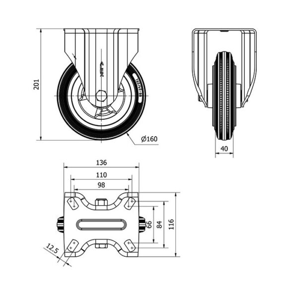 Rueda goma fija Alex diametro 160 mm. modelo 2-4754
