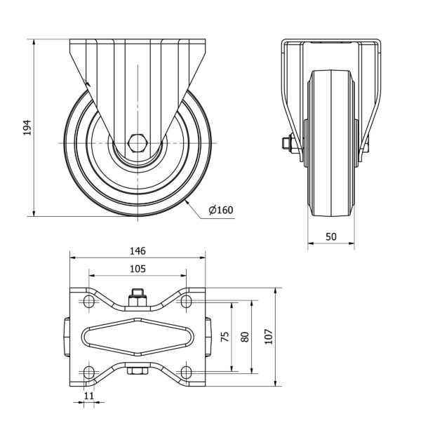 Rueda goma fija Alex diametro 160 mm. modelo TW0297