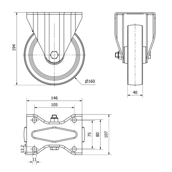 Rueda goma fija Alex diametro 160 mm. modelo TW0303