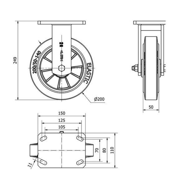 Rueda goma fija Alex diametro 200 mm. modelo 2-0452