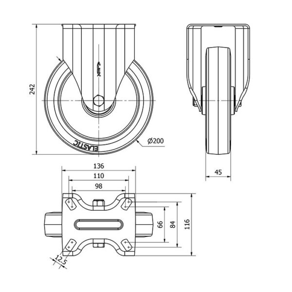 Rueda goma fija Alex diametro 200 mm. modelo 2-2734