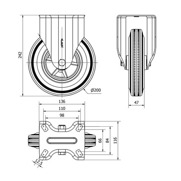 Rueda goma fija Alex diametro 200 mm. modelo 2-3405 EAN 8422202234052