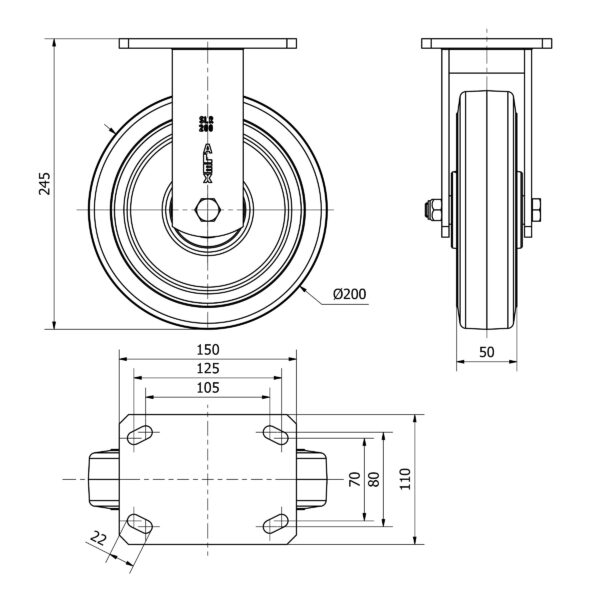 Rueda goma fija Alex diametro 200 mm. modelo 2-3644
