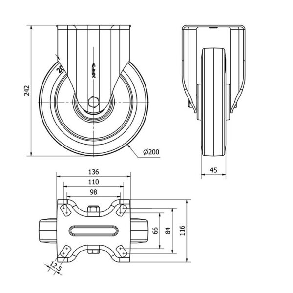 Rueda goma fija Alex diametro 200 mm. modelo 2-4469