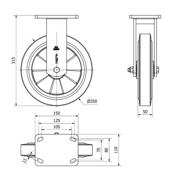 Rueda goma fija Alex diametro 250 mm. modelo 2-2286