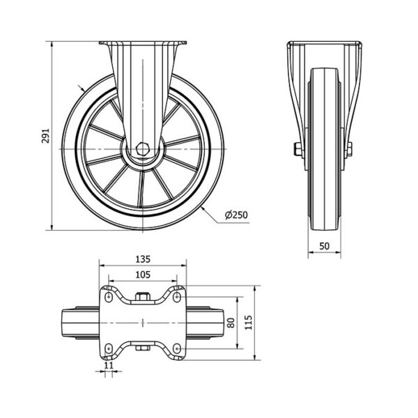 Rueda goma fija Alex diametro 250 mm. modelo 2-2679
