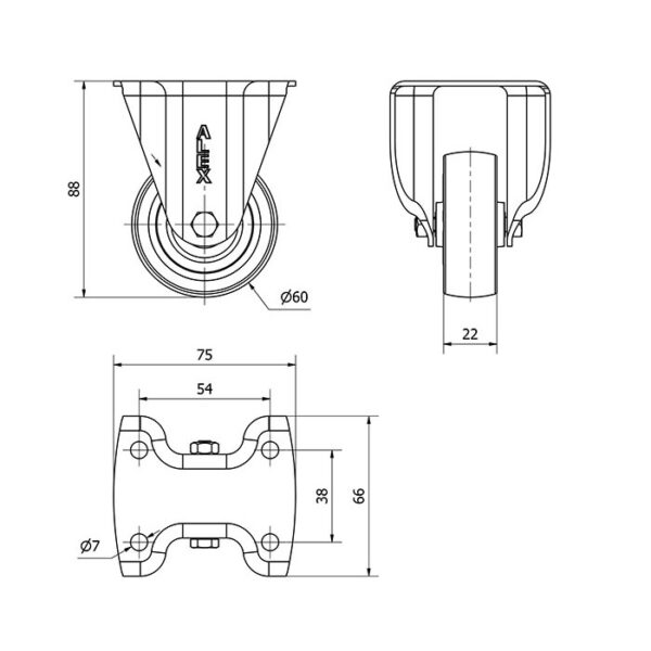 Rueda goma fija Alex diametro 60 mm. modelo 2-5141