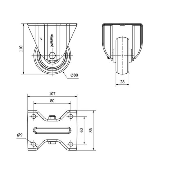 Rueda goma fija Alex diametro 80 mm. modelo 2-3221