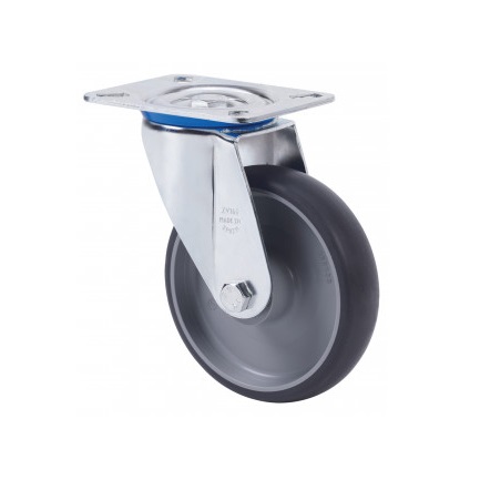 La serie de ruedas Alex ZV-PGZ son ruedas de goma gris inyectada con el núcleo de poliamix, indicadas para soportar cargas hasta 180 Kg. Se utilizan en útiles de transporte logístico, carros de transporte de alimentación, cocinas, cantinas, empresas de alimentación, supermercados, maquinaria ligera y jaulas de transporte. PGZ: No manchan el suelo. Facilidad de movimiento con carga.