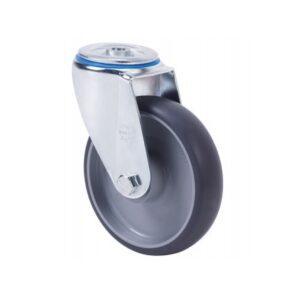 La serie de ruedas Alex ZV-PGZ son ruedas de goma gris inyectada con el núcleo de poliamix, indicadas para soportar cargas hasta 180 Kg. Se utilizan en útiles de transporte logístico, carros de transporte de alimentación, cocinas, cantinas, empresas de alimentación, supermercados, maquinaria ligera y jaulas de transporte. PGZ: No manchan el suelo. Facilidad de movimiento con carga.