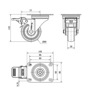 La serie de ruedas Alex ZV-PGZ son ruedas de goma gris inyectada con el núcleo de poliamix, indicadas para soportar cargas hasta 180 Kg. Se utilizan en útiles de transporte logístico, carros de transporte de alimentación, cocinas, cantinas, empresas de alimentación, supermercados, maquinaria ligera y jaulas de transporte. PGZ: No manchan el suelo. Facilidad de movimiento con carga.