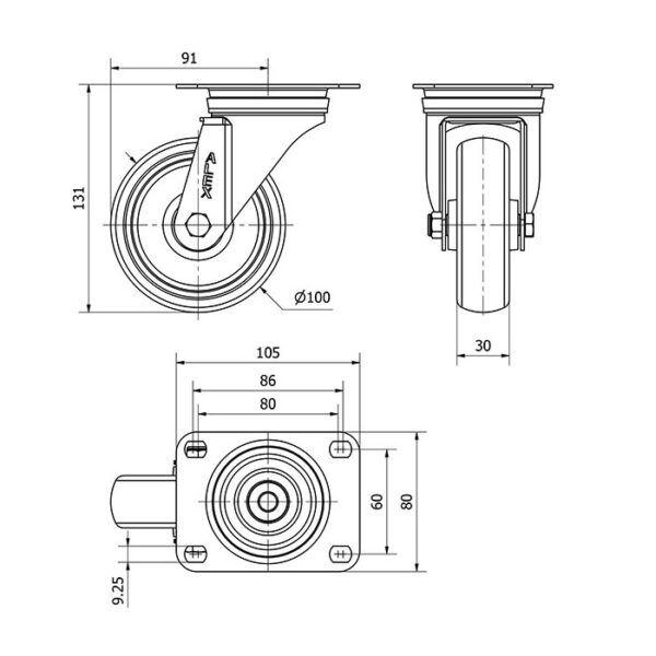 Rueda goma giratoria Alex diametro 100 mm. modelo 2-3262