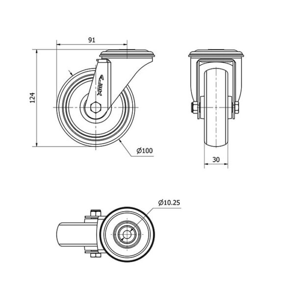 Rueda goma giratoria Alex diametro 100 mm. modelo 2-3292